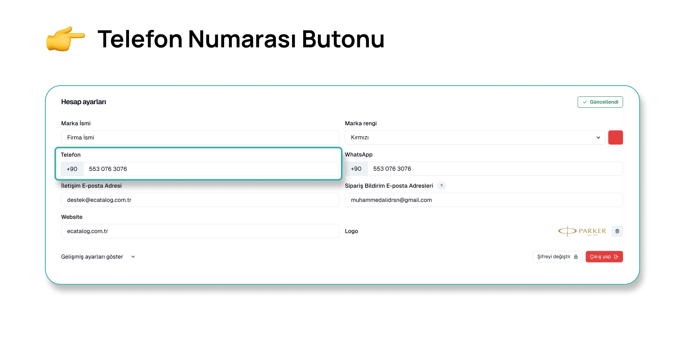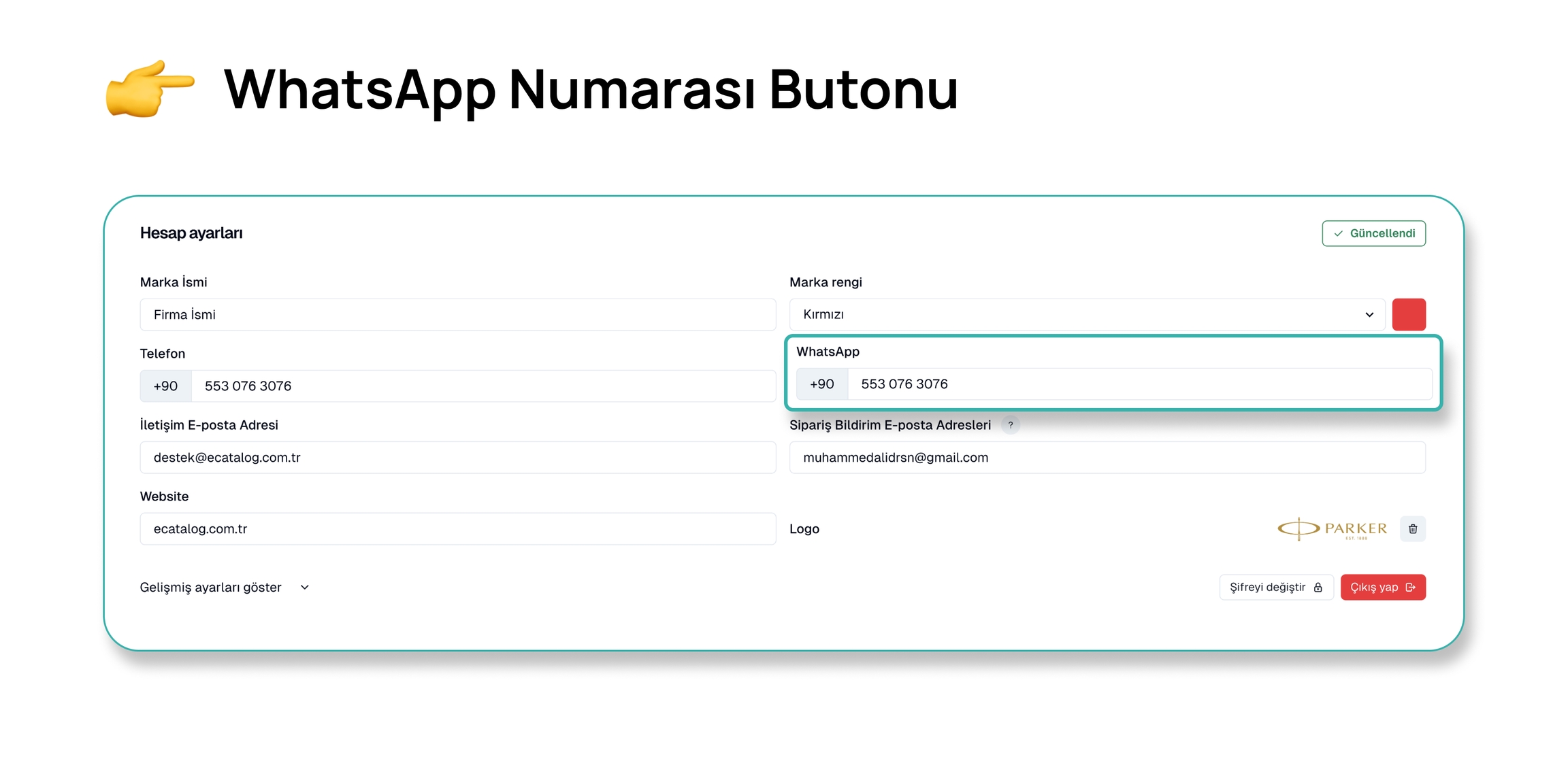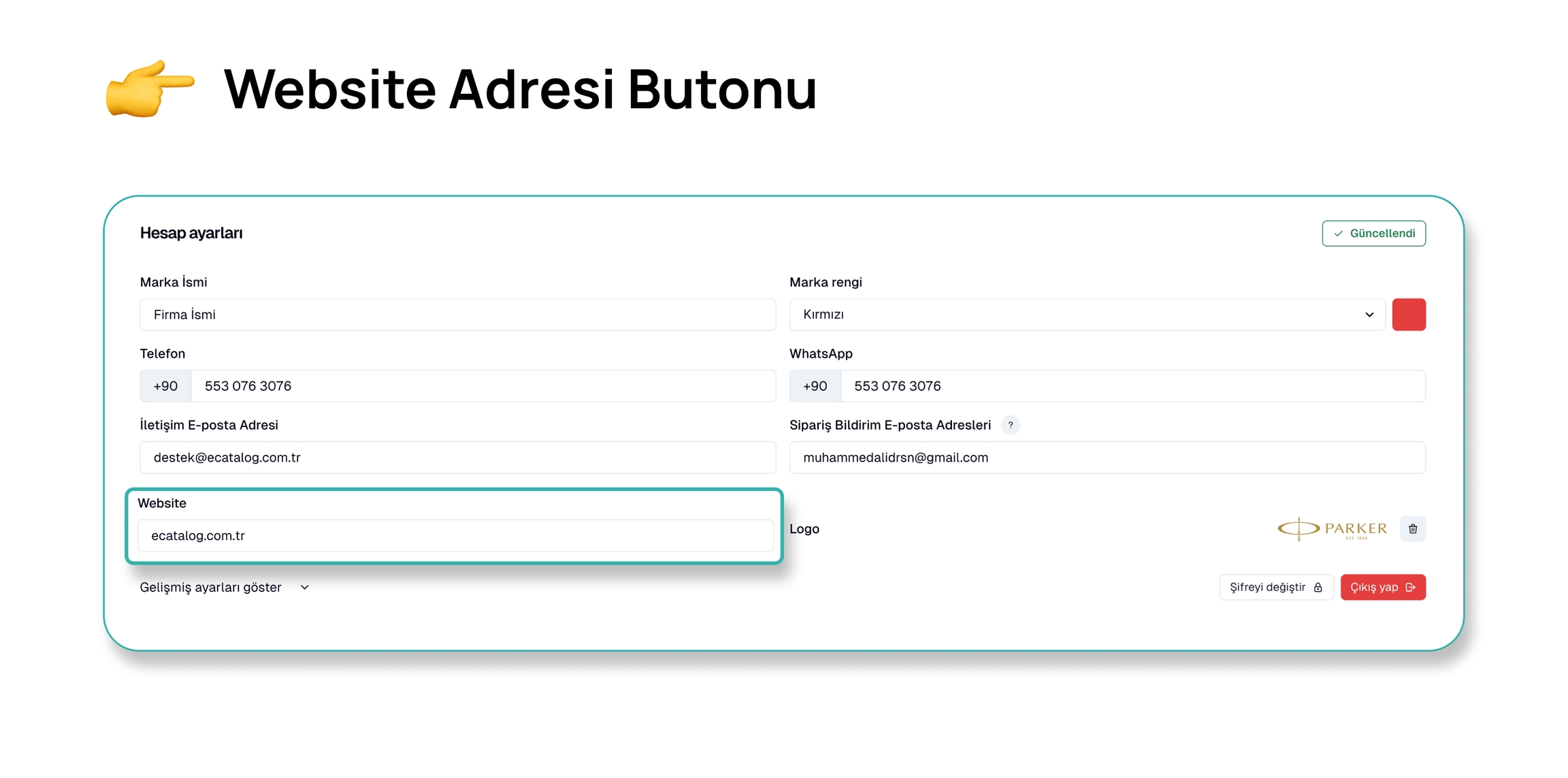 eCatalog hesabınızı ilk açtığınızda yapmanız gereken ilk işlem, hesap ayarlarını yapılandırmaktır. Bu adımda aşağıdaki bilgileri girerek kataloglarınızın görünümünü ve iletişim bilgilerini kişiselleştirebilirsiniz.