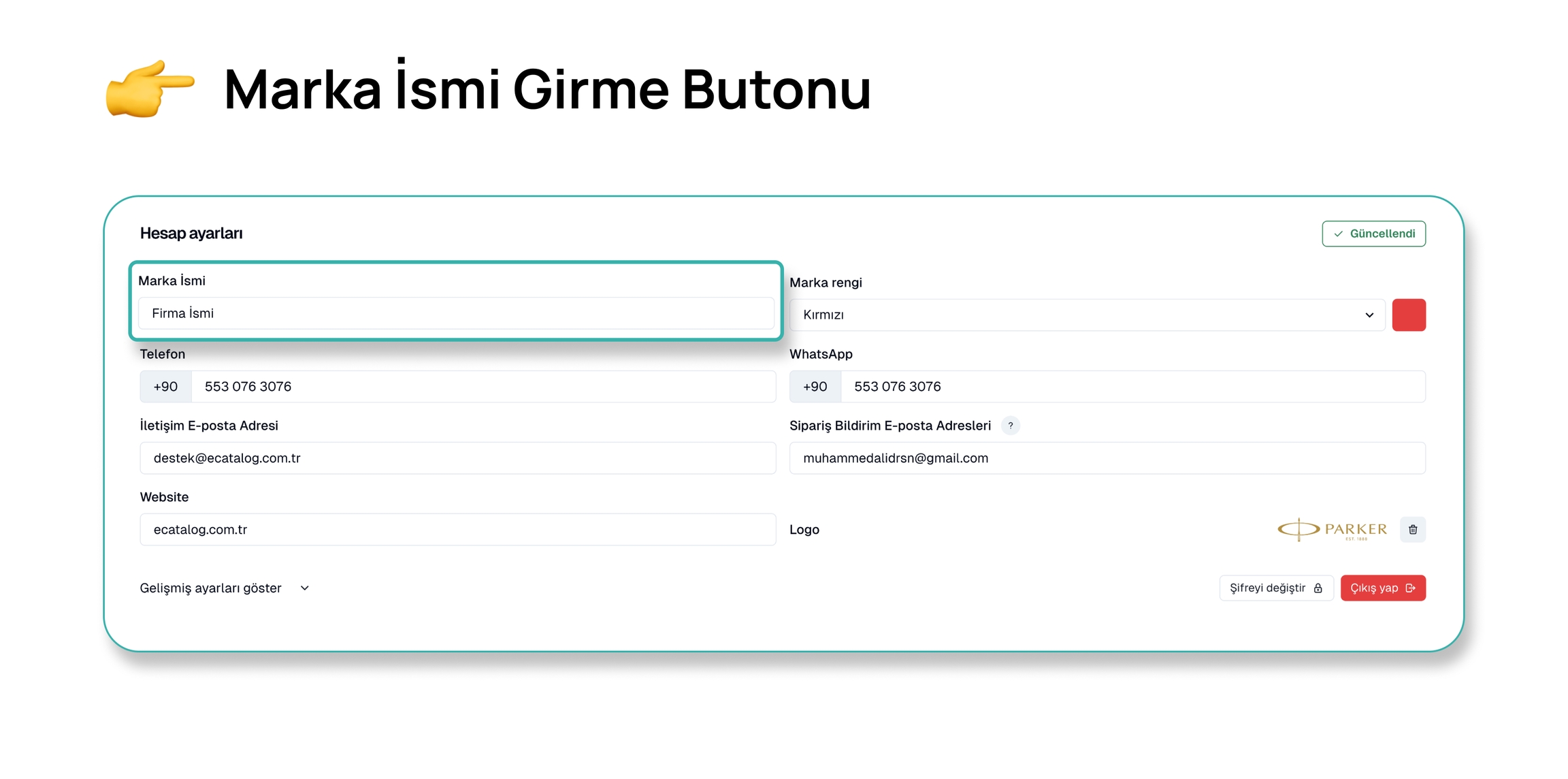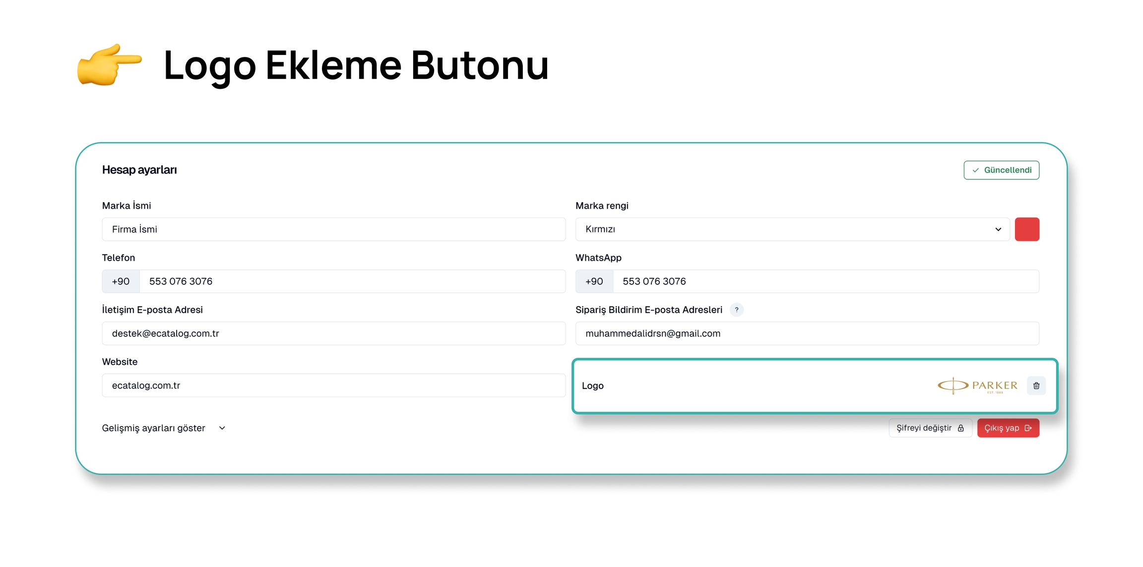 Logo: Firmanızın logosunu yükleyin. Bu logo, kataloglarınızda ve e-posta bildirimlerinde görünecektir.