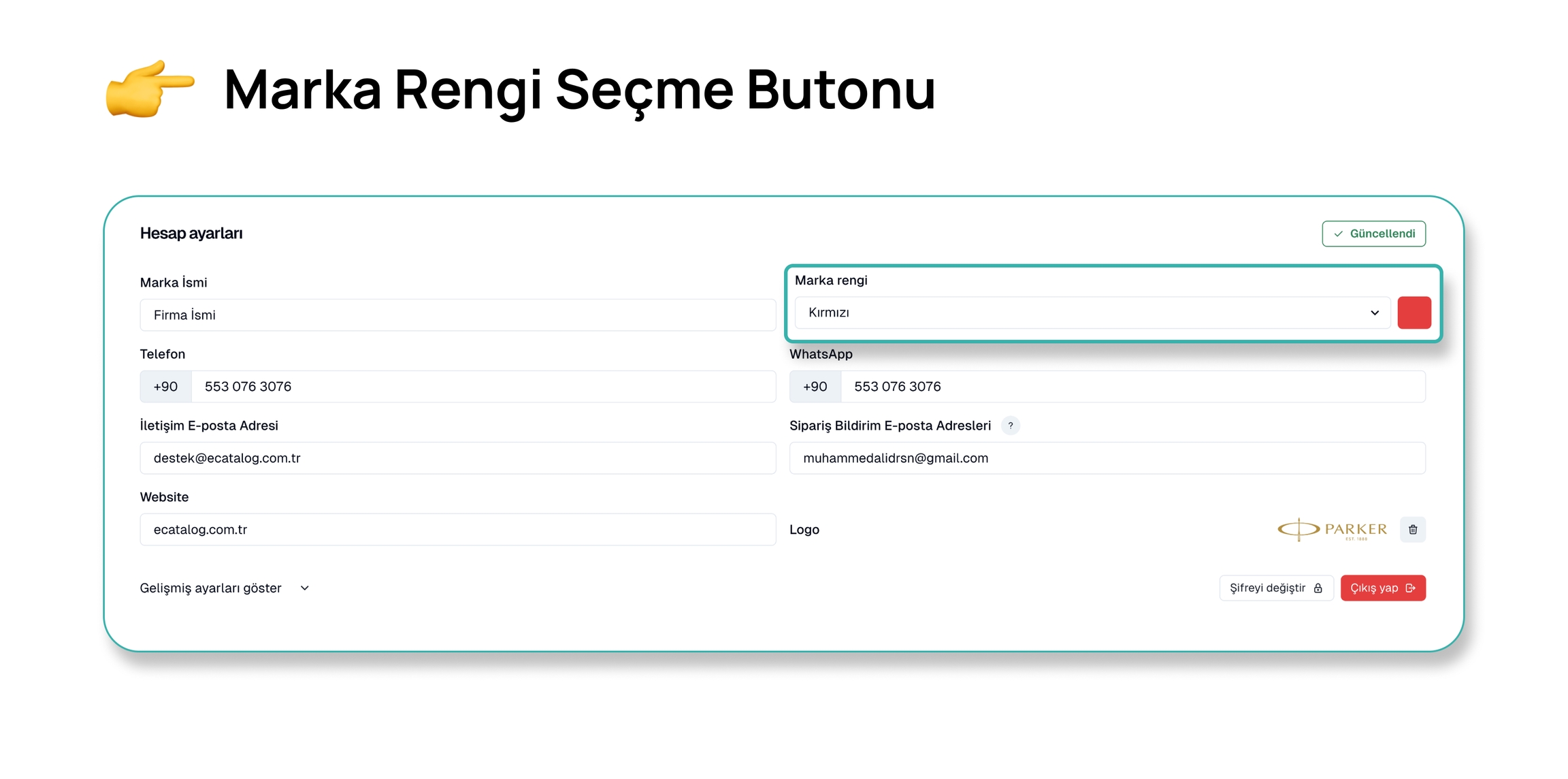 Marka Rengi: Katalogda kullanılacak ana renk. Bu renk, butonlar ve diğer bazı öğelerde kullanılacaktır.
