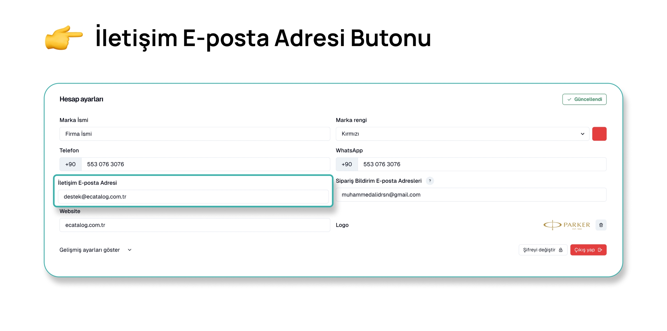İletişim E-posta Adresi: Genel iletişim için kullanılacak e-posta adresini girin.